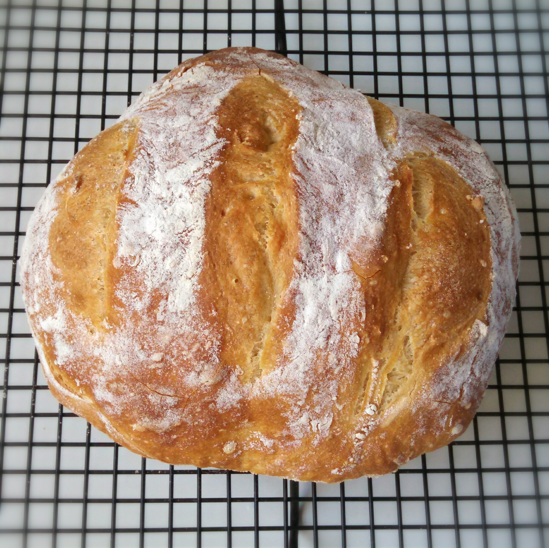 The next loaf I made looked a lot better. I remembered to dust the top with flour and made my slashes a little deeper. However, it also turned out gummy.