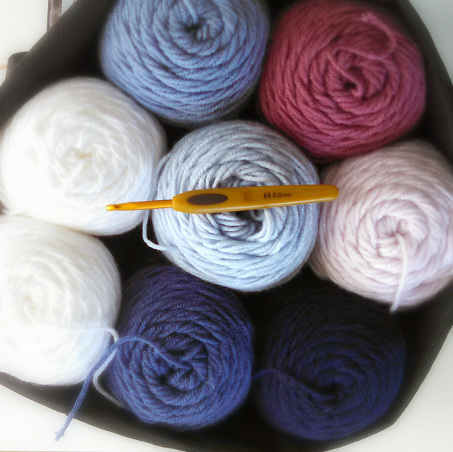 Had I actually posted last Wednesday, I would have had to say that I hadn’t made any progress on my afghan squares. As I said above, the week was particularly busy with little crafting time at home. And I have to work on these at home. Why?